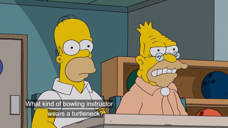 | 19:04, 15 March 2026 | Turtles-Simpsons-34x17-Pin Gal.jpg (file) | 53 KB | Tometheus | == Summary == *'''Episode''': 34x17 Pin Gal *'''Reference''': '''Grandpa''': What kind of bowling instructor wears a turtleneck? {{fair use}} | 1 | |